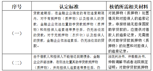 助学贷款呆账认定标准及核销所需相关材料