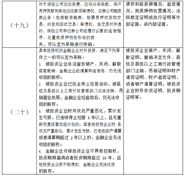 1.一般债权或股权呆账认定标准及核销所需相关材料